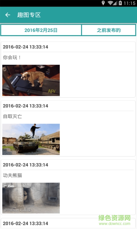 2.趣图专区,可观看某一日期前或后的趣图;