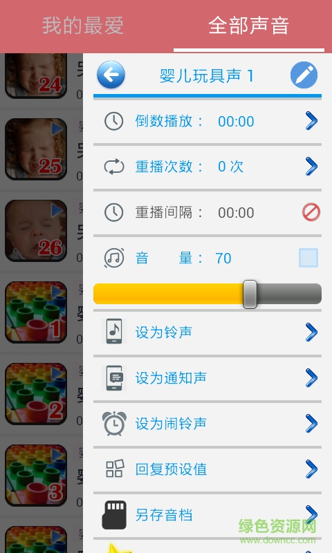 婴儿的声音是一款趣味铃声应用,在这里有诸多婴儿的声音资源,一方面可以逗家里的小宝贝玩耍,另一方面还能当做手机铃声来保存宝宝的回忆!