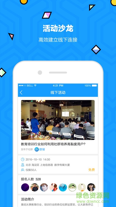 3.线下活动:便捷的发布功能、完善的报名管理,各类精彩活动从不错过.