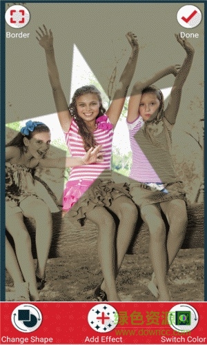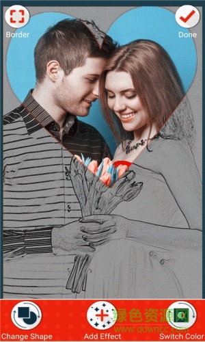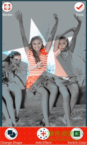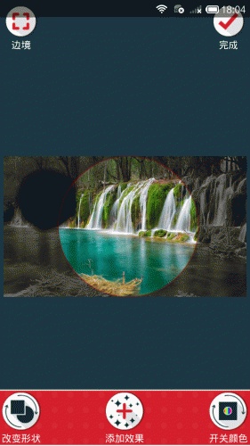5、择一个照片形状和使用手指手势调整形状的照片。形状包括照片圈,心脏照片,钻石照片和更多。
