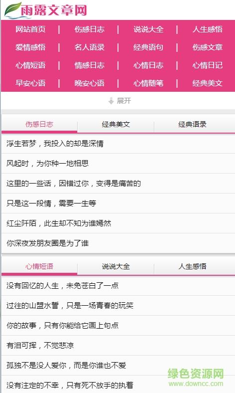 雨露文章网手机版是一款文章阅读手机软件,典语句、心情说说、心情短语、经典语录、伤感日志、心情日志、人生感悟、经经典文章、爱情文章、空间日志、情感文章、励志文章、亲情友情应有尽有,喜爱的朋友赶快到绿色资源网下载体验吧!