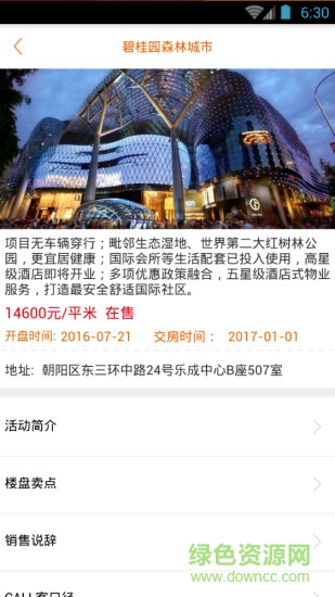 1、首页可以进行城市筛选,选择后显示该城市楼盘,点击楼盘跳转到详情页,在详情页可以进行楼盘的报备以及拨打楼盘电话咨询详情,也可以将楼盘分享给其他人。