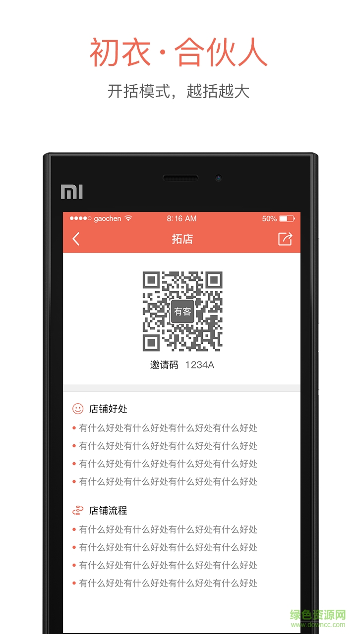 初衣合伙人APP为初衣APP的合作版,在开店同时发展下级客户,让自己家族越变越大,零售服装,合伙赚钱,开启服装行业的新时代。可以查看自己直属店和下级下下级合伙人销售盈利情况,把控数据,轻松赚钱。