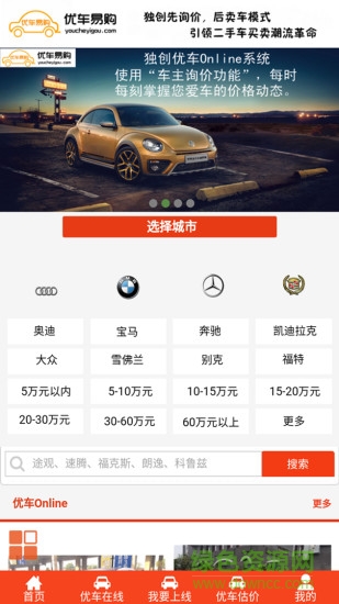 优车易购客户端是一款非常便捷的二手车交易app,各大汽车品牌全面覆盖,可以根据品牌的价格来进行二手车的筛选,欢迎大家到绿色资源网下载使用!