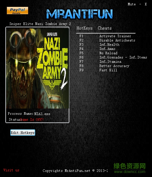 狙击精英纳粹僵尸大军2修改器是针对同名pc游戏玩家提供的一款辅助工具,通过该辅助玩家可以自由修改游戏属性,如无限生命、无限装弹、无限体力等,操作简单功能强大,需要的朋友欢迎来绿色资源网下载!