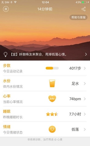 心麦手环app是专为连接心麦手环所配套的软件,如果你感到疲劳,压力,失眠还有饮食不规律等,那就需要注意了,可能是负能量缠着你,有了心麦手环让负能量通通消失,全面健康监测预警,有需要的朋友快上绿色资源网下载吧!