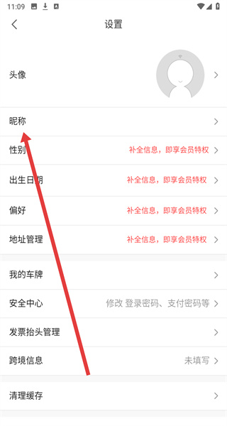 2、在进入到设置页面后,可以点击昵称选项,进行修改用户名。