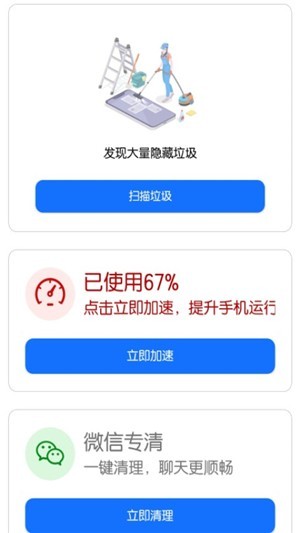 小蓝清理官方版是专门用来垃圾清理的手机神器,提供垃圾扫描、短视频专清、通知栏清理、微信专清、立即加速等功能,可以帮助用户快速全面的清理手机隐藏垃圾,优化手机系统,提升手机运行,使用起来更加流畅方便,安全好用!