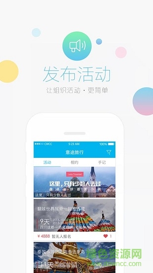 集旅游户外活动、旅游户外兴趣社交为主的App。“意途”倡导绿色旅游,健康出行。