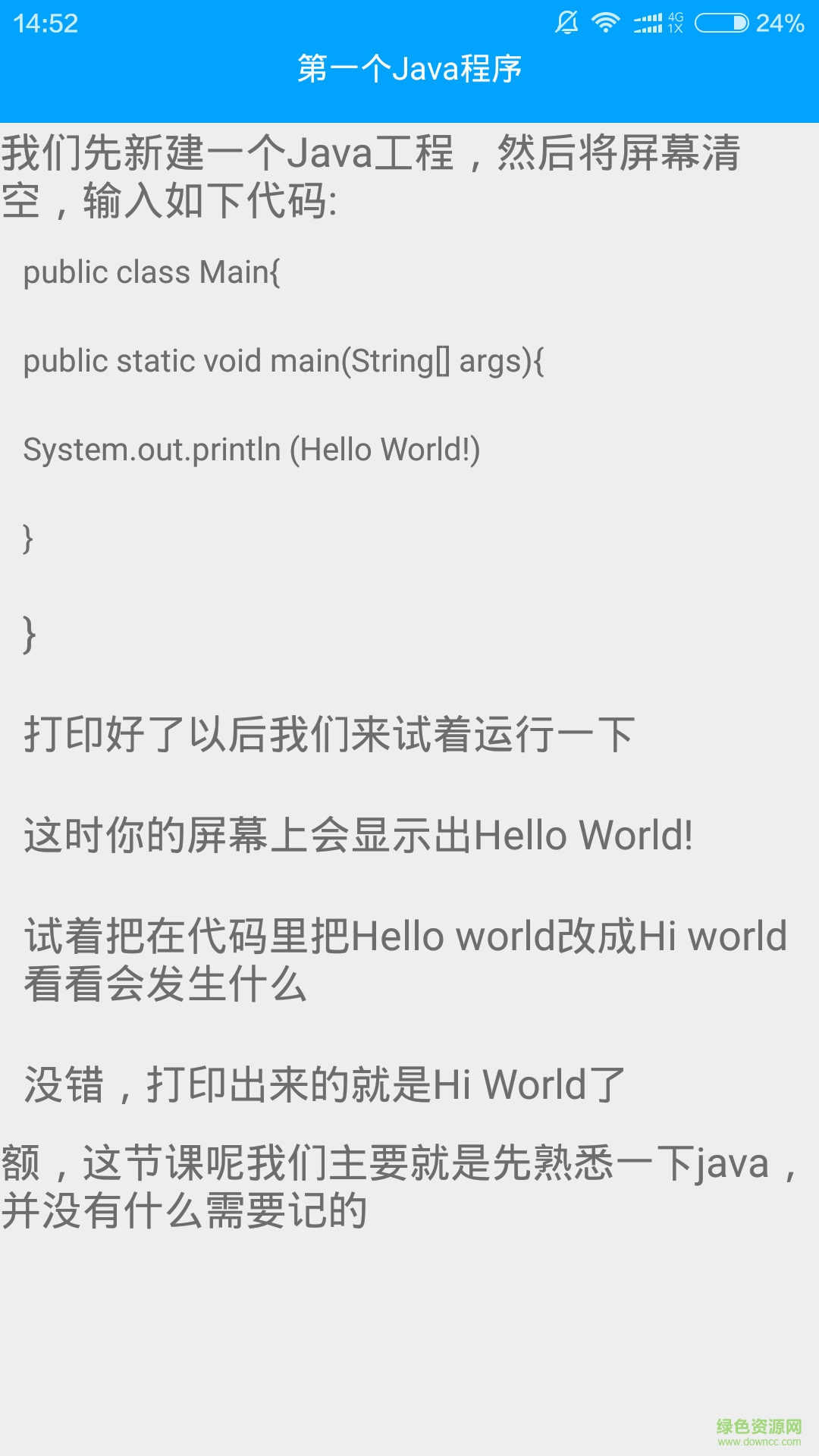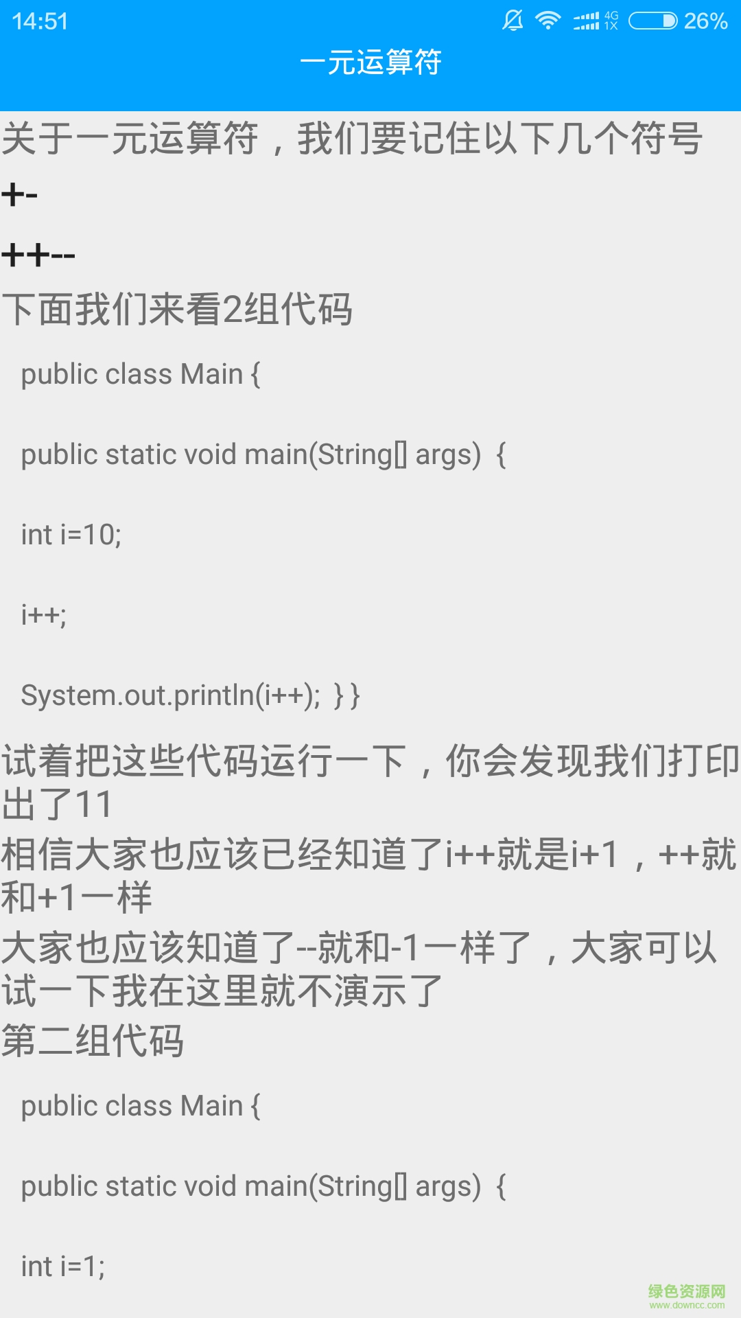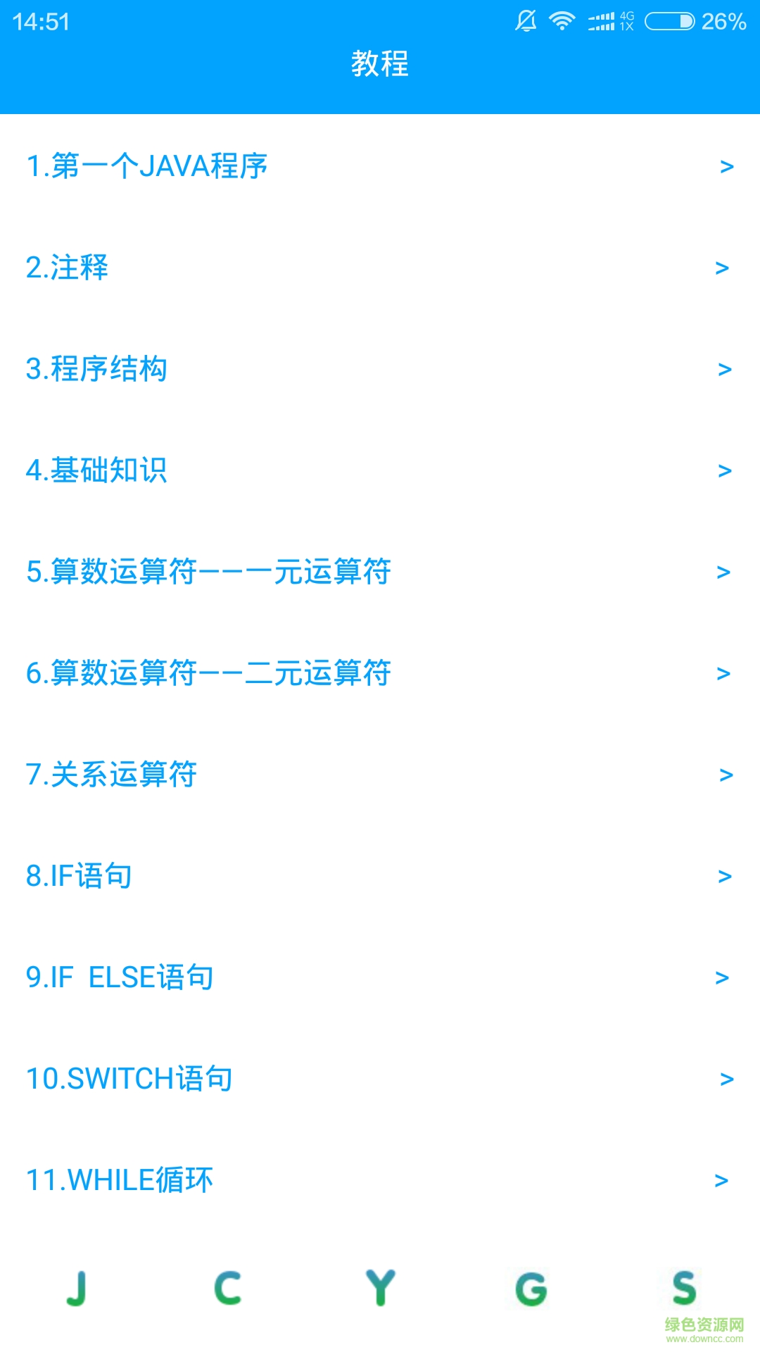java君是一款编程学习手机客户端,用户能够在手机上就可以学习java语言,给需要的用户带来了极大的方便,平时的空闲时间都能够用手机去学习。极大的提高了用户学习java的效率!有需要的朋友赶快来绿色资源网下载吧!