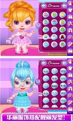 --除了剪发、烫发、设计刘海等美发环节,游戏还为你准备了海量发饰、服装以及妆容.如何搭配,就看你的咯