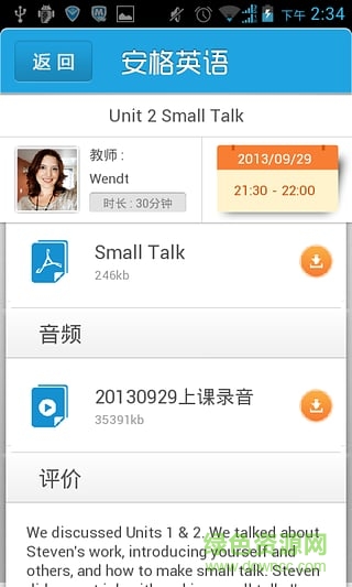 安格英语学习助手,是一款专为安格客户打造的智能移动学习管理工具。借助此款软件,安格英语所有学员均可便捷地通过手机完成授课提醒、课前预习、课程参与直至课后复习的全过程。学员不仅可以通过手机阅读课件进行预习,更可随时回顾与外教的课堂实录,巩固所学知识。贴心的课前提醒确保学员不会错过每一次与外教的精彩互动。