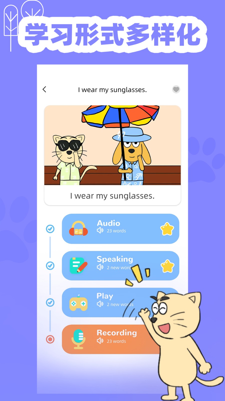 适趣英语APP不仅具有丰富的功能更有全新的英语学习绘本等你来加入,专为孩子设计不仅具有专业发音更有寓教于乐的学习方式让孩子一边学习一边感受英语的乐趣,简单的操作方式更有海量单词等你来学习,功能丰富内容多样化,喜欢的朋友赶紧来下载吧!