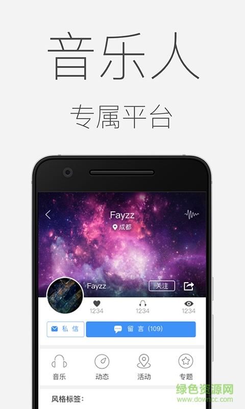 【独立音乐人】展示分享原创音乐、发布演出活动、官方个性专访;