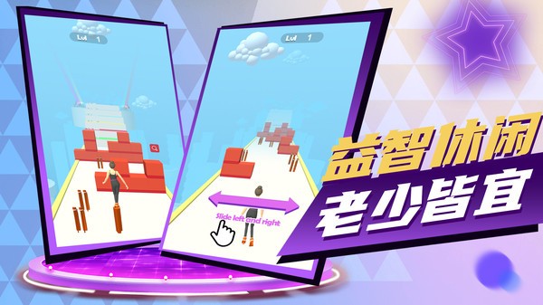 看我表演精心打造出与众不同的闯关玩法,游戏将走秀与跑酷完美融合,你需要帮助这个模特小姐姐成功到达终点,赛道上会随机出现鞋跟,踩上去能够让你的高跟鞋变得更高,最后就如同踩了个高跷,画面相当魔性,很考验大家的操作。