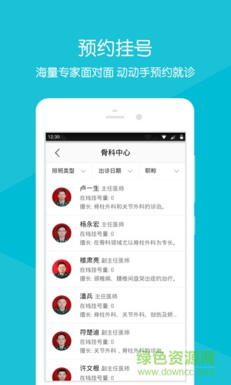 3.预约挂号:可根据时间段、科室、专家在客户端自由进行门诊预约