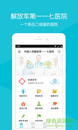 解放军一一七医院app是北京当地的军区医院,用于给患者提前预约,诊断治疗比较方便,解放军一一七医院是一款便捷贴心的软件,为人民服务是医院首要宗旨,有需要的用户快来绿色资源网下载吧!