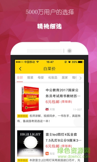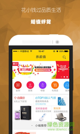 券超值app是一款专注于手机购物的软件,这个平台为广大用户各大商场的优惠券,让每一个用户都能买到物超所值的商品。这个平台上不仅商品优惠活动多,而且商品品质保证,用户可以放心购买。欢迎大家来绿色资源网下载使用。
