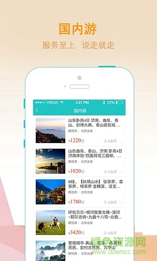 游您所愿旅游网app是一款专为喜欢出行旅游的朋友们设计的手机旅行客户端,在这里,拥有这款应用,你可以不用为机票、酒店、门票发愁,不仅可以快速浏览当地特色景点和好吃好玩的地方,还能获取最靠谱的路线信息,感兴趣的朋友们赶紧来绿色资源网站下载吧!