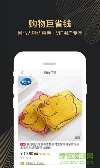 3.其依托于淘宝天猫的供应链和商品库,精选天猫中母婴、鞋服、居家、食品几大类目的上万种全球正品好货。再通过河马专享优惠券、大额优惠券等丰富的用户利益点,每天更新,为河马VIP提供超高性价比的品质好货,是河马VIP专享的精品购物省钱利器。