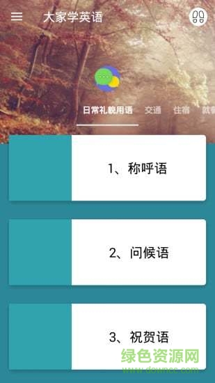 大家学英语app是一款非常方便,功能强大的常用英语口语学习软件,有了它用户就可以畅通无阻的学好英语了,掌握日常口语,进行一些简单对话都不在话下,让你体验学习英语的好处。还在等什么,登陆绿色资源网下载体验吧!