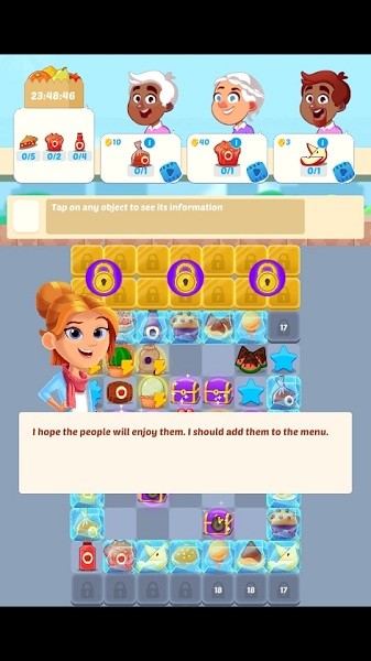 合并与服务游戏驾驶餐车来完成经营任务吧!这是一个卡通风格的经营小游戏,根据顾客订单需求来为他们提供对应的产品,在原有物品上还要不断上新其他商品,吸引更多的顾客前往你的小店。