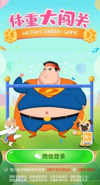 体重大闯关手游是一款好玩的休闲闯关小游戏,以减肥健身为主题全新设计,带来精致卡通的形象画面,提供不同的卡片选择,玩家需要控制角色,安排合理的运动健身,改变角色身材,挑战更多游戏关卡,操作简单易上手!
