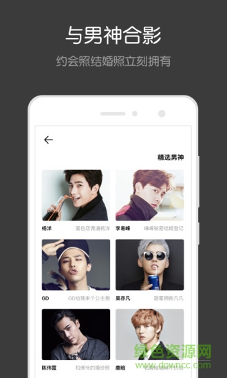 【男神合照】上传自己美的正脸照片,立即生成你和男神的合影,还可以随意切换动作与姿势,拥抱杨洋、调戏韬韬、爱抚TFboys都能轻松实现!