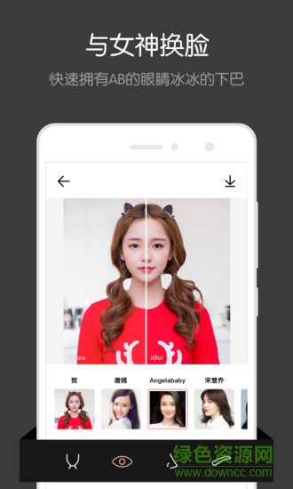 【变换五官】选择你喜欢的女星,即可完美融合她们的五官,轻松拥有范冰冰的电眼、angelbaby的下巴、舒淇的嘴唇!