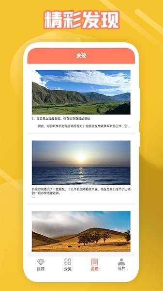 爱上阅读安卓版提供了丰富的美篇文章,用户可以在这里找到各种各样的推荐,从阅读中感悟人生,软件提供了不同的分类和推荐,如果你对此感兴趣,那么就可以选择阅读,感兴趣的朋友可以来下载体验。