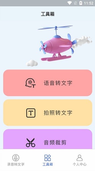 2、包含了文字转语音、录音实时转文字、音频转文字、录音机等功能,使用起来十分便利