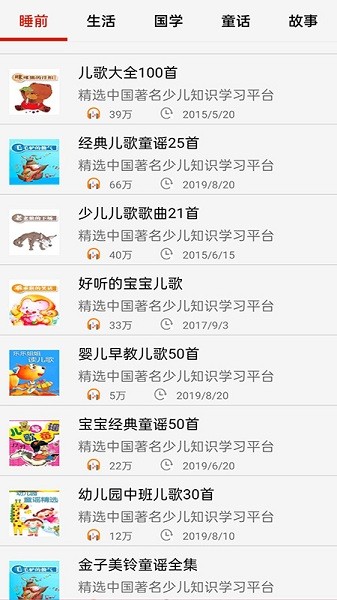 儿童启蒙故事儿歌手机版提供了海量资源,丰富的题材可供选择,挑选所感兴趣的,一键快捷点击即可轻松畅听,当老师或家长在育儿过程中想找相关资料和音频时,不妨来这里看看吧!
