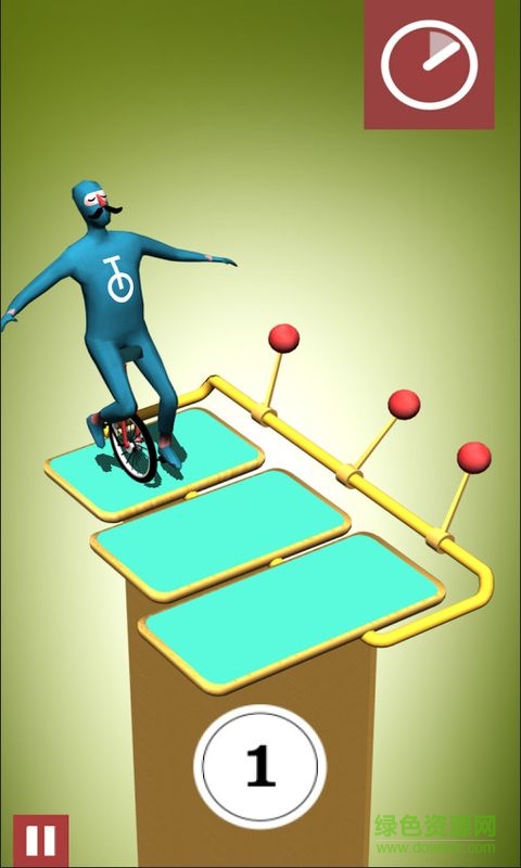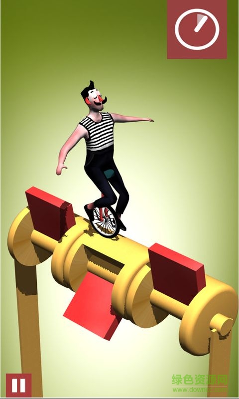 通过触控操作方式,让游戏中骑独轮车的胡子大叔保持平衡,对大多数没有体验过独轮车的小伙伴来说,绝对是不用摔跤就能过把瘾的好机会!游戏尽管只有短短25关,但每一关都有一个令人感觉相当棘手的骑行道,比如一根绳索,一个旋转台,摇摇晃晃的桥,或是环形跑道。游戏设定胡子大叔骑着独轮车一直前进,玩家触碰屏幕时,他就向后蹬车,所以需要你通过不断地调整大叔的骑行方向来顺利穿越或躲避险道。