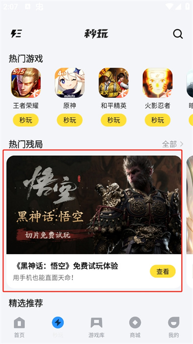 2、在此界面中我们可以看到黑神话悟空的游戏板块,我们点击进入到其中;