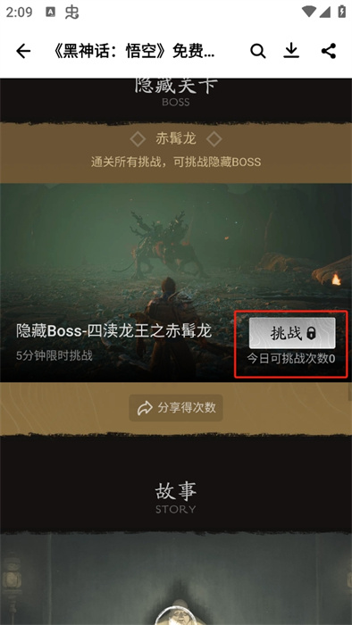 3、随后我们就可以看到需要挑战次数才能去进行挑战,挑战次数需要完成应用宝的任务;