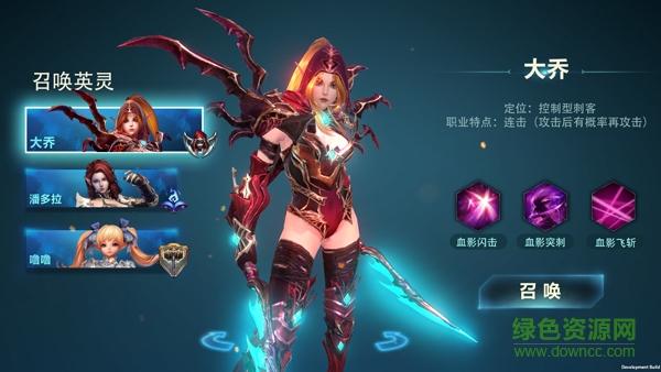 血刃刺客是控制型刺客,外形走的是冷漠御姐风;技能可致盲,突击能力极强,可对单体瞬间打出极高的输出;其一技能血影闪击快速攻击敌方单体两次,造成伤害;其二技能血影突刺突袭到敌方单体面前攻击,造成伤害并使其命中率下降60%;其必杀技血影飞斩飞跃到空中向敌人发出斩击,造成全体伤害,并提高自身速度.