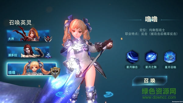 噜噜是均衡型战士,外形走的是可爱萝莉风,可抗可打可群攻,同时还能够对敌方造成眩晕效果.其一技能星月镰击可以对地方单体攻击两次,造成伤害;二技能星月之舞可对敌方单体造成多段伤害,并有小概率重置技能CD;其三技能星月召唤召唤史莱姆从天而降,对敌方全体造成伤害,并有概率眩晕敌人.