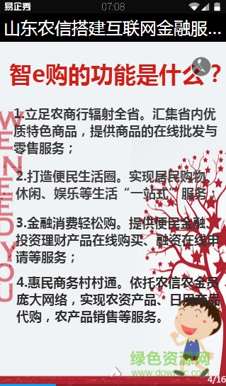 山东农信智e购商家版是由山东农村信用社推出的手机网上商城的商户版,又名山东农商银行智e购商户版。这款购物软件能够让每个商家都非常便捷的管理自己的商品更新状态,并且只能的选择购物者喜爱的东西,让商家能够随时做出改变,吸引更多消费者,感兴趣的朋友赶快来绿色资源网下载体验吧!