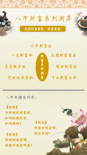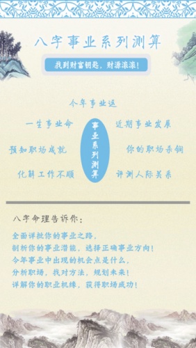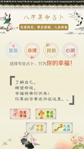 1、周易算命:通过运用中国传统的周易占卜,从周易卜卦角度算命,让你趋吉避凶,把握先机。