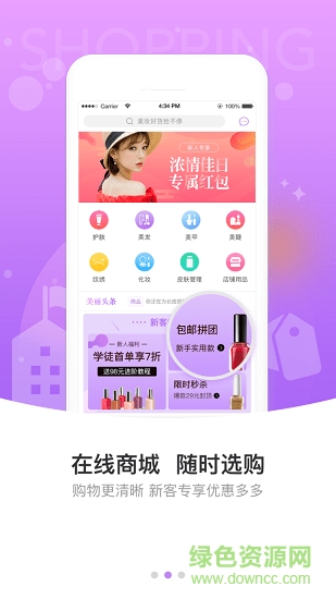 美帮帮app是专为女性用户们所提供的一款美容护肤商品售卖的应用软件,如果你想到家体验,也可以直接利用手机搜寻线下的门店,各种商品都有其详细的使用说明和真人示范教程,让用户们能够放心的使用,有需要的朋友欢迎登陆绿色资源网下载哦。