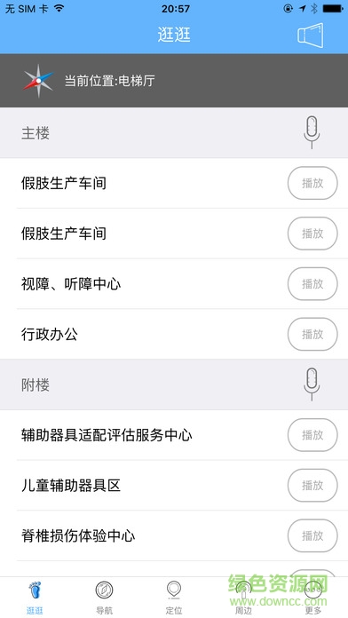 逛逛:目录可以播报楼层和房间简介,检测到已安装的本公司硬件信号时,自动显示和语音播报“当前位置:xxx”,摇一摇停止语音播报并播报当前位置信息;