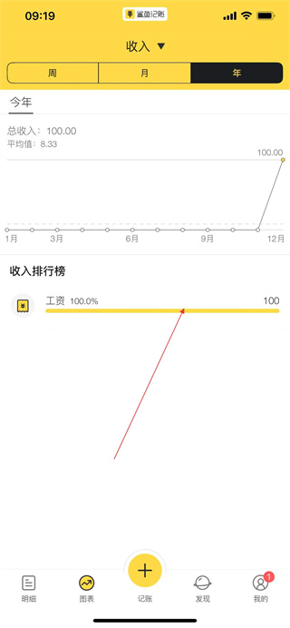 3、在收入统计视图中选择年标签,即可查看年度收入明细及排行榜。