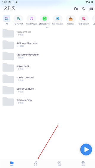 1、启动MX播放器的应用,进入首页点击底部音乐的标签。