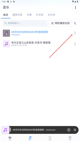 2、在音乐的页面内,选择音乐并点击右侧三个点的按钮。