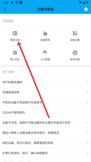 2、在进入到问题与帮助页面时,可以点击登录注册按钮,查看相关的问题与解决方法。