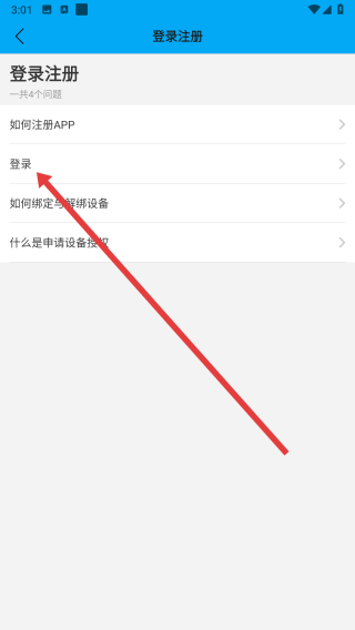 3、在进入到登录注册问题页面后,可以点击登录选项进入查看如何登录。