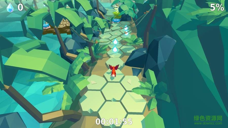 地图由一个个六边形拼接而成,玩家将要在游戏里控制这只呆萌的小狐狸,来完成一个神秘的任务---找寻王子。如传统跑酷游戏一样,小狐狸的奔跑是自动的,玩家只需要控制左右来完成角色的转向即可。