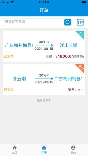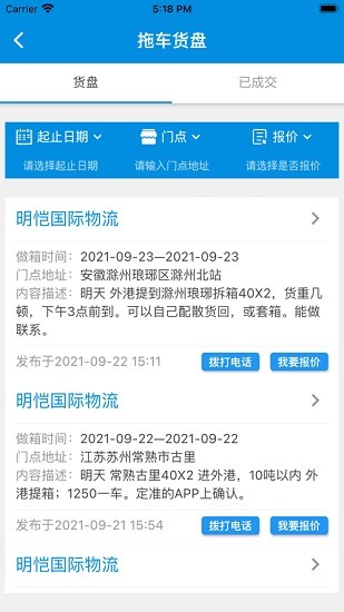 4、实时更新服务,不管是货源信息,还是运货订单信息,平台自动实时更新。