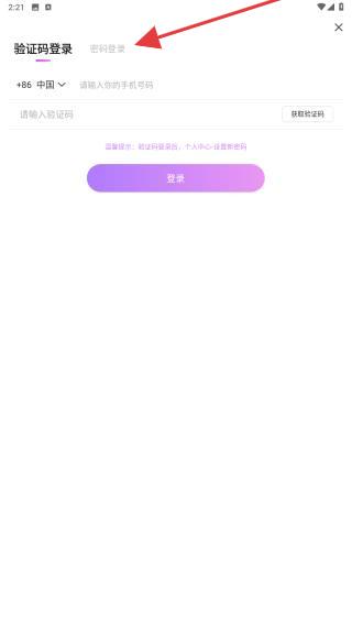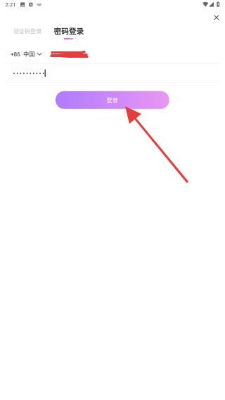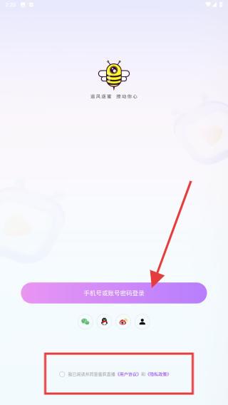 1、打开蜜疯直播手机APP,进入软件,需点击手机号或账号密码登录的按钮。