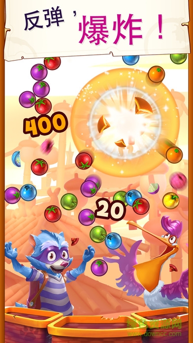 和泡泡神射手浣熊Rico一起踏上征途环游世界,从阳光沙滩到繁华街道,游遍世界各地的名胜古迹.冲破关卡,和更多逗趣的伙伴探索城市;烧脑的物理谜题,还能助现实中的地标建筑恢复原貌,亲手让各座城市重现生机.结交来自世界各地的众多酷炫伙伴:来自香港的大熊猫王先生;来自巴黎的狮子狗Violette;还有旧金山最大名鼎鼎的鹈鹕Pockets!集结全明星阵容,一边打泡泡、一边游世界!